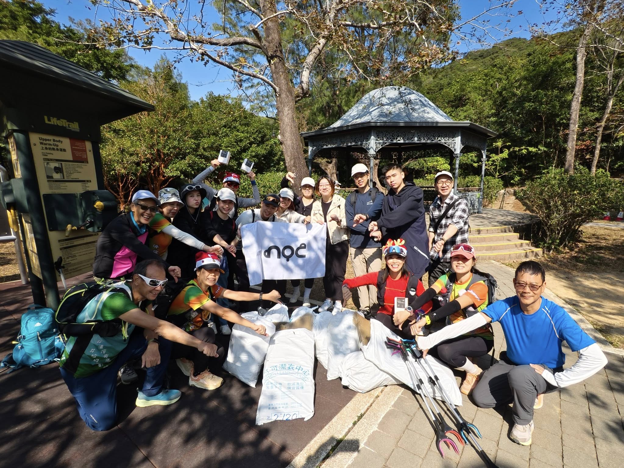 路線:薄扶林水塘道->>港島徑1段逆行->西高山西崖->西高山->夏力道->山頂廣場終點。全程不足4公里,經NOC職員及清徑先鋒各9人積極入林搜括之下,共撿拾17公斤垃圾。事後,我們還獲贈美味的drip bags咖啡呢,飲杯!
